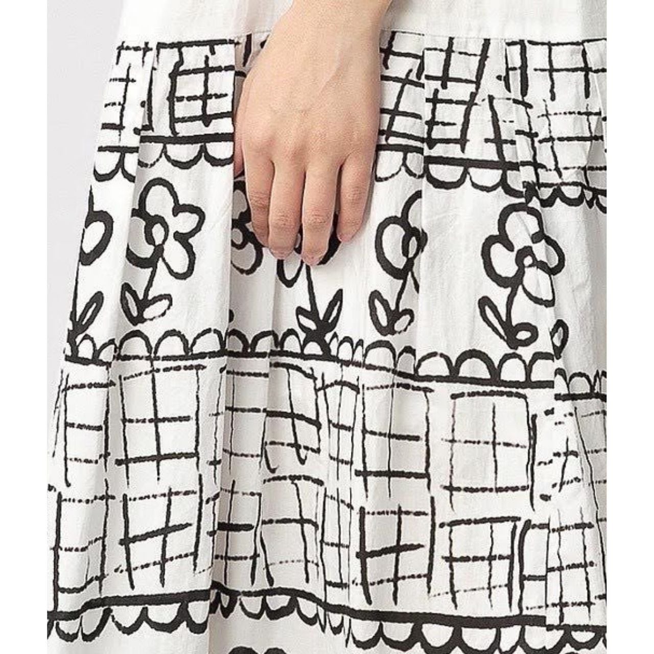 手描き風の線画プリントが目を引く、