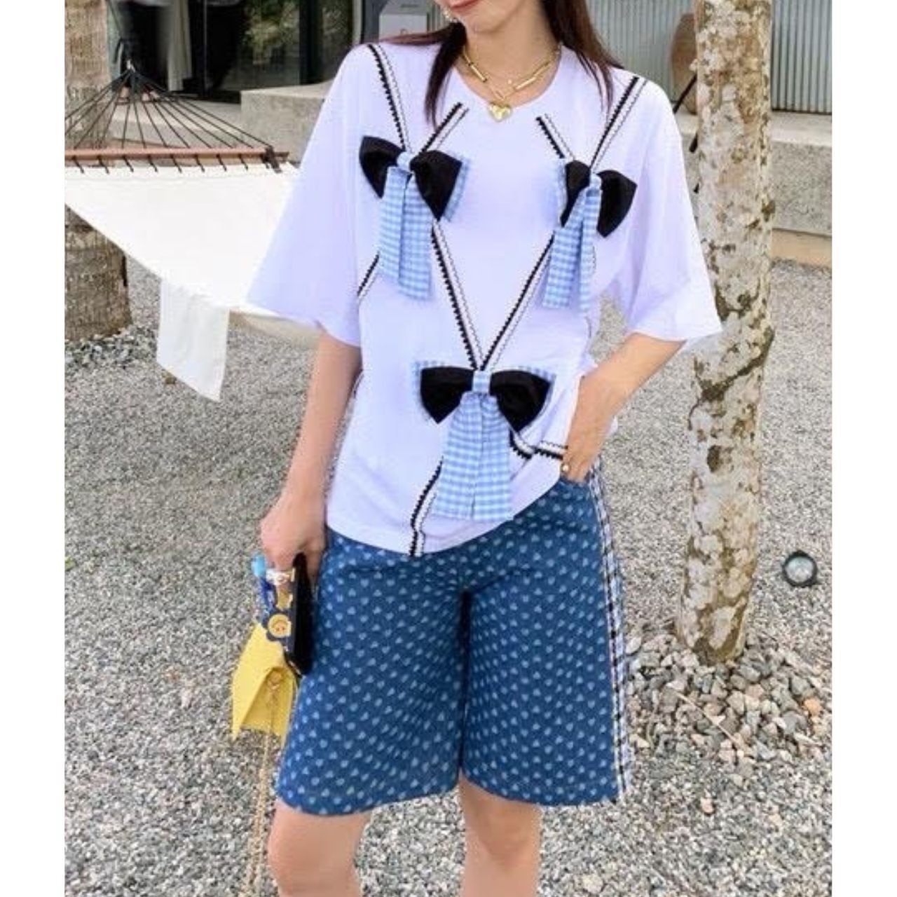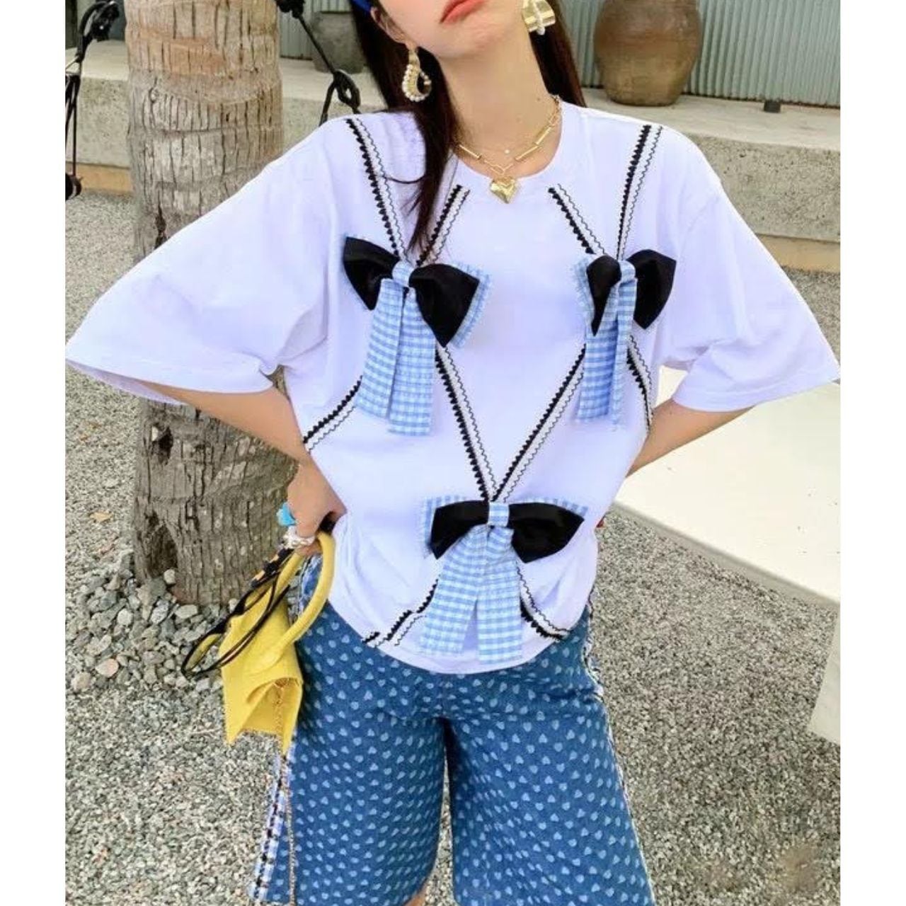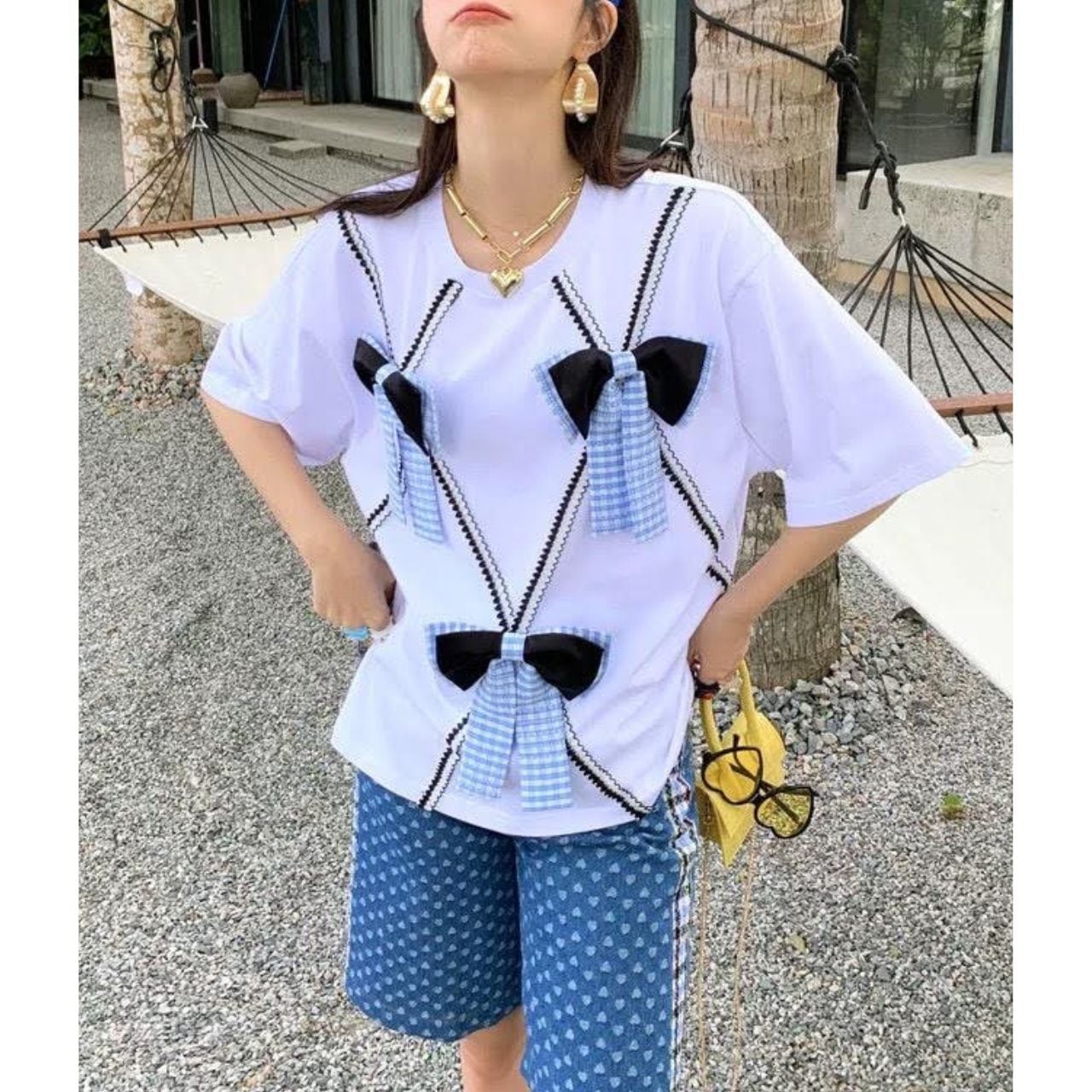 フロントにあしらわれた立体的なリボンデザインが目を惹く、