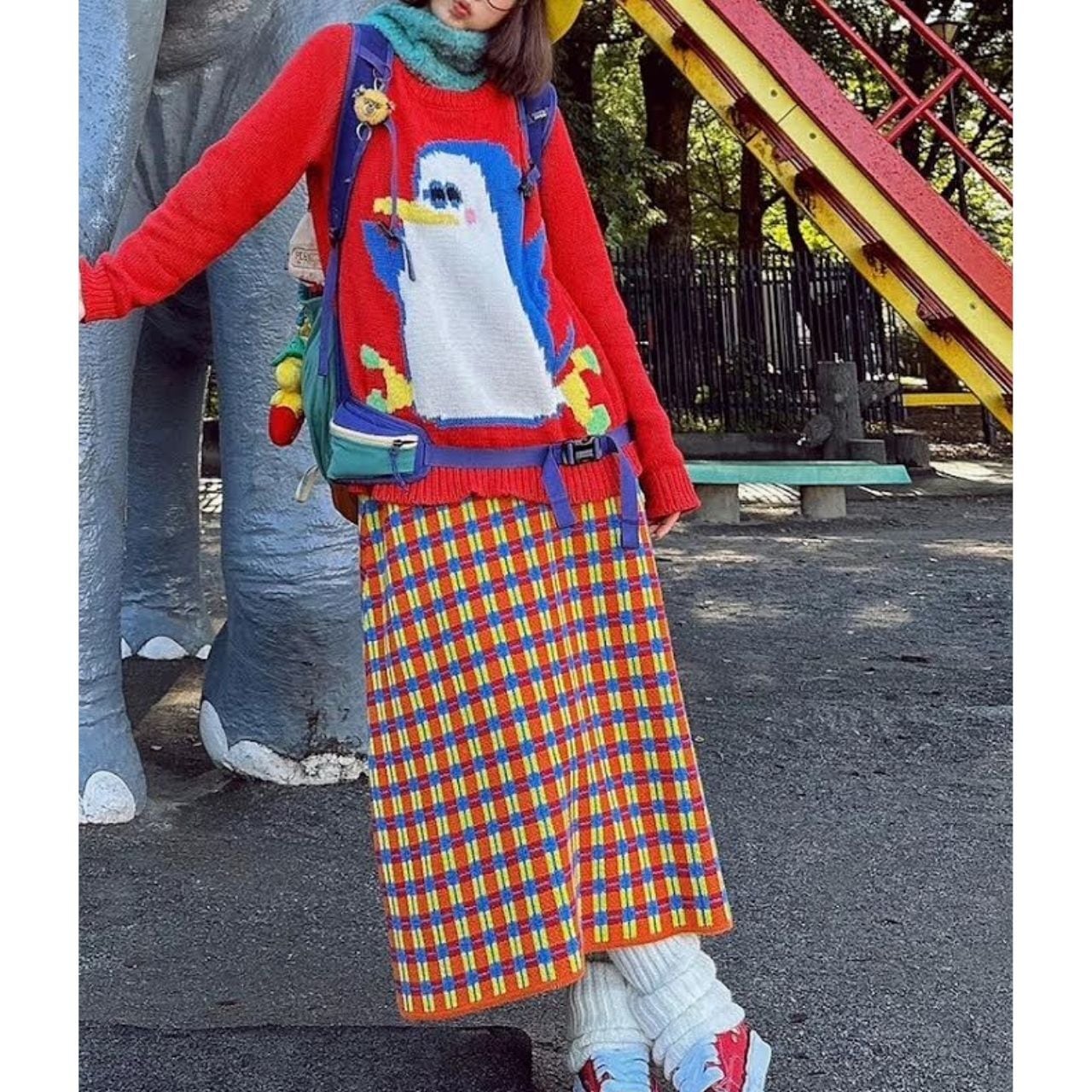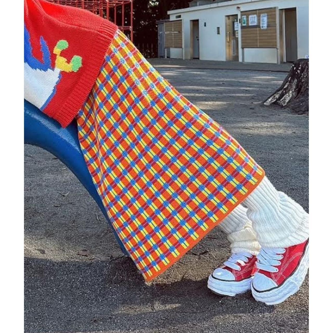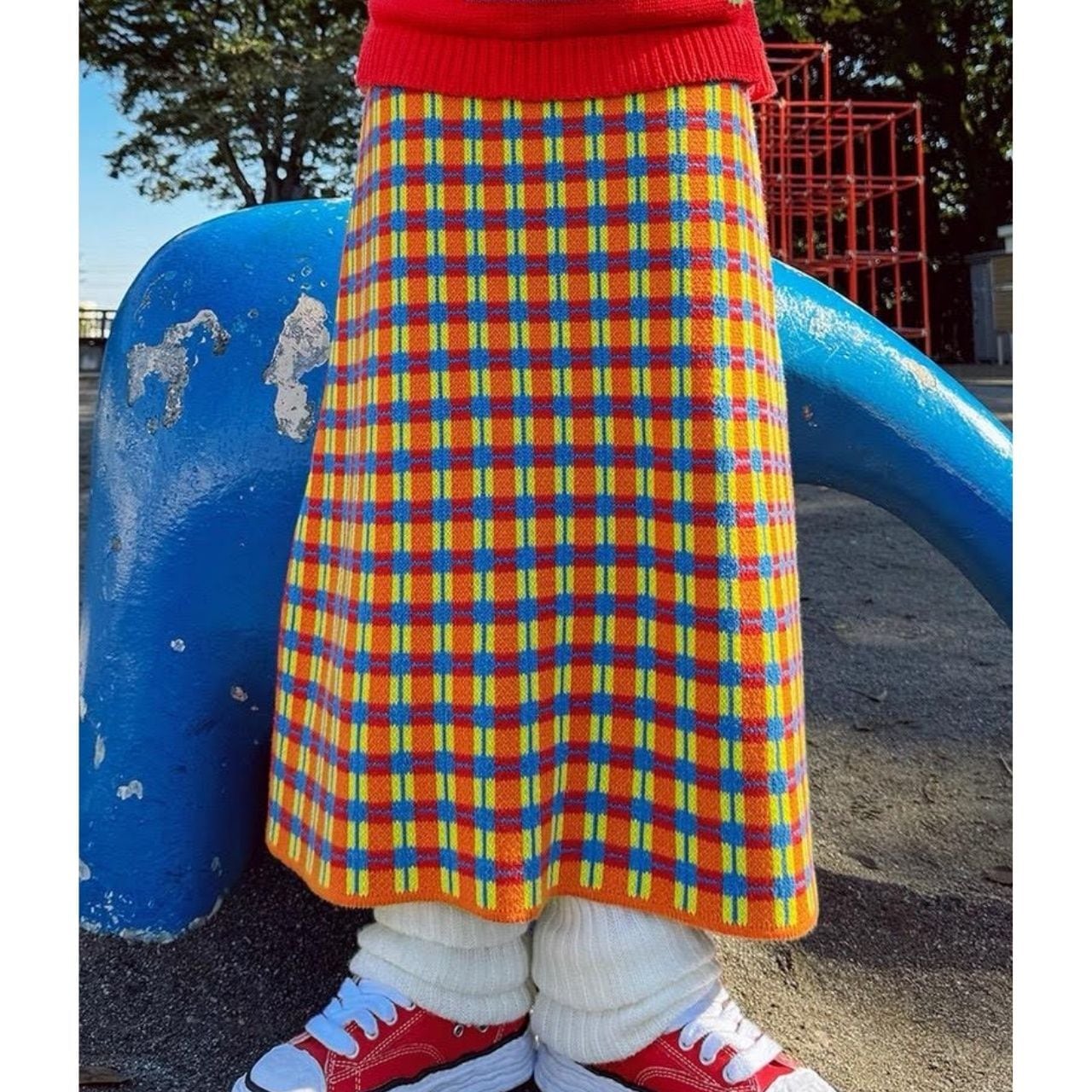 チェック柄ニットスカート。