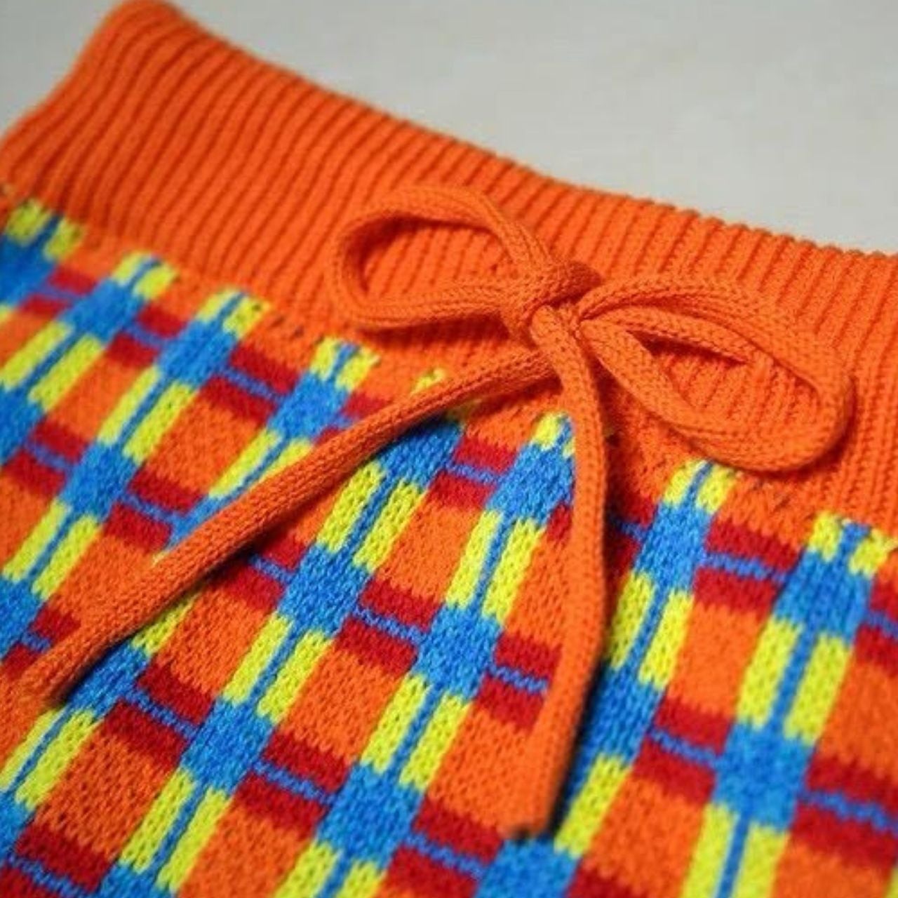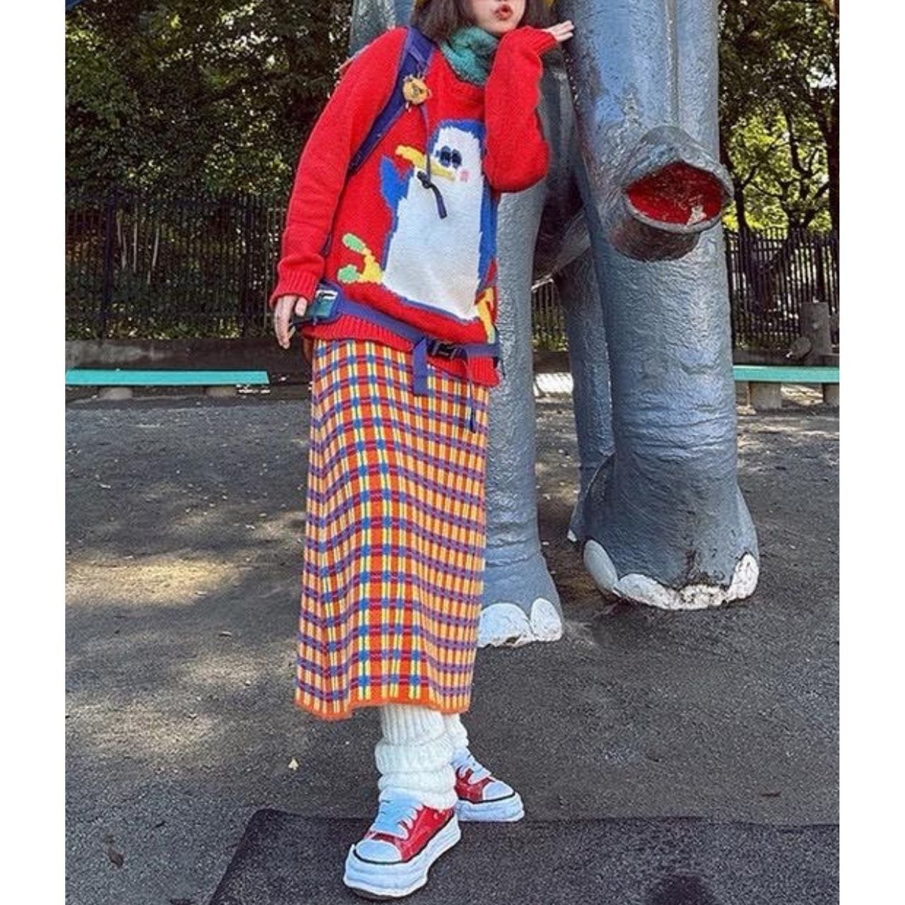 Colorful Check Knit Midi Skirt A1131