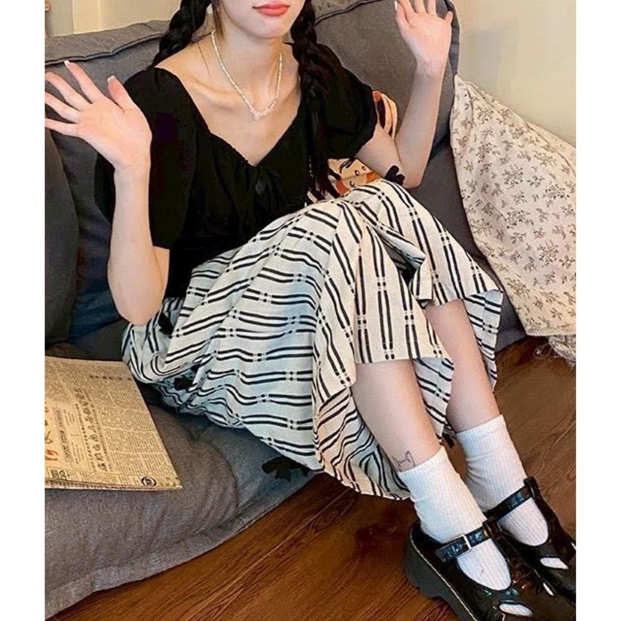 ソックスやシューズとのコーディネートも楽しめます。