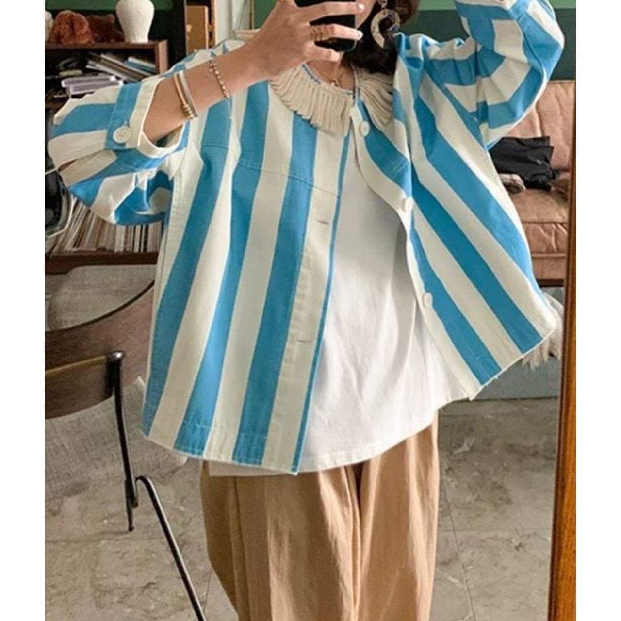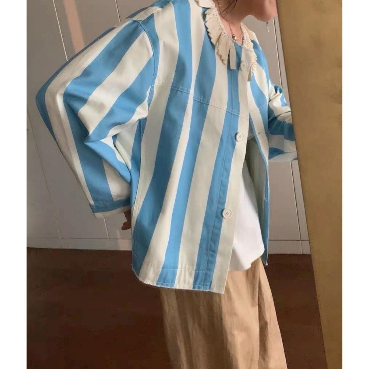 Blue Stripe Light Shirt Jacket A4045