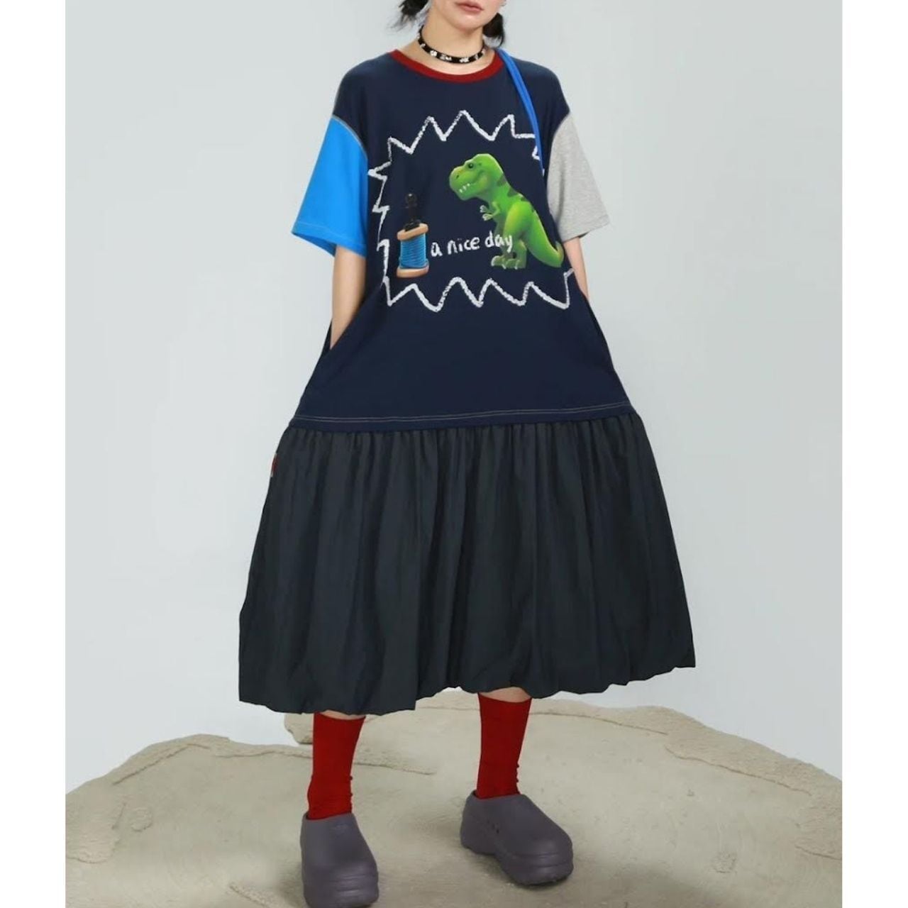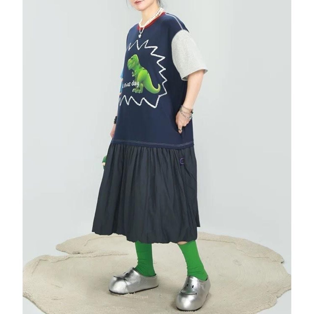 遊び心たっぷりのロングワンピース。