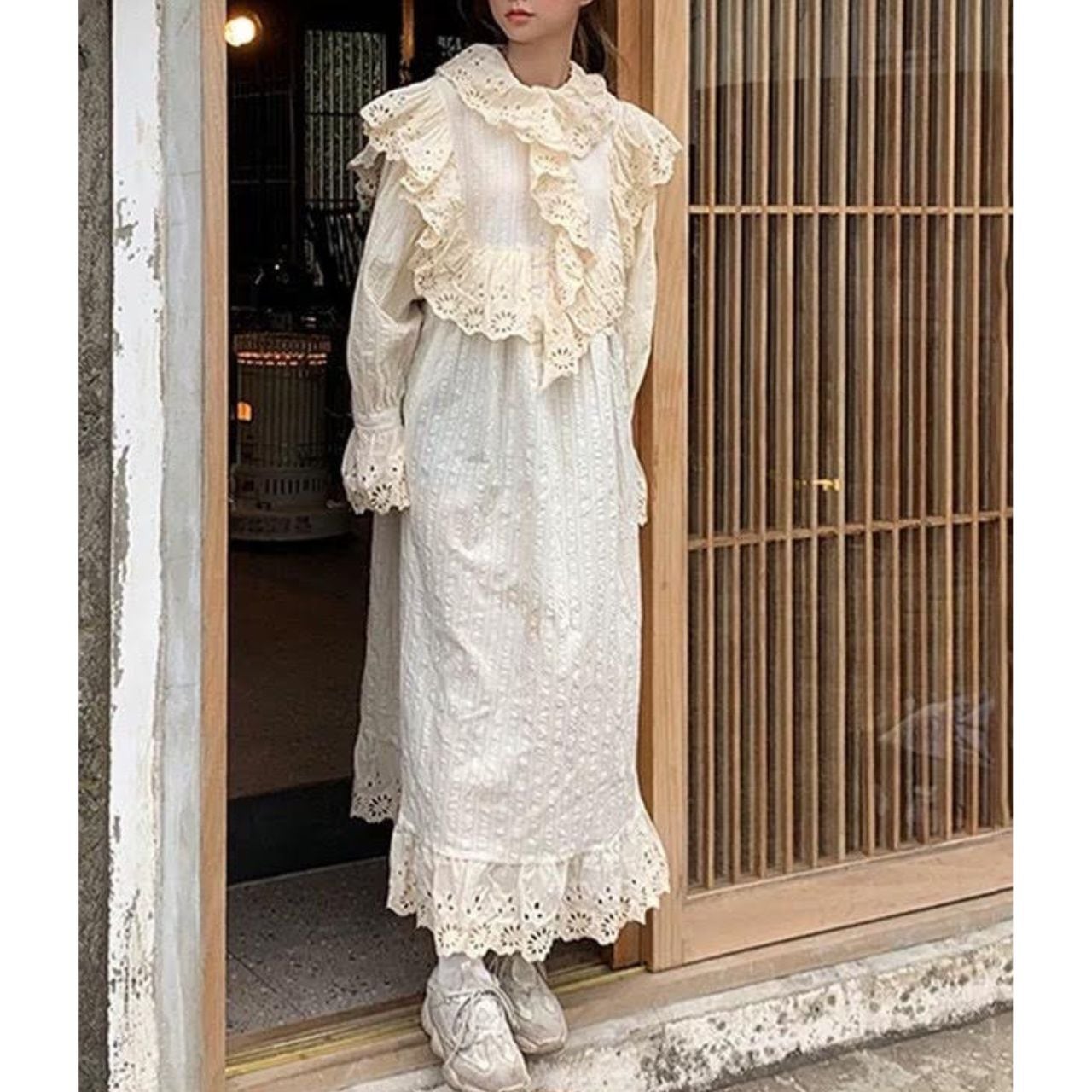 Lace Frill Long Dress A1165