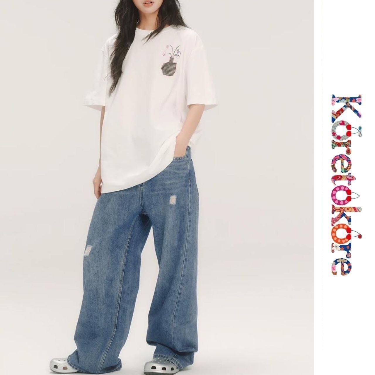 花瓶イラストがポイントのTシャツ。