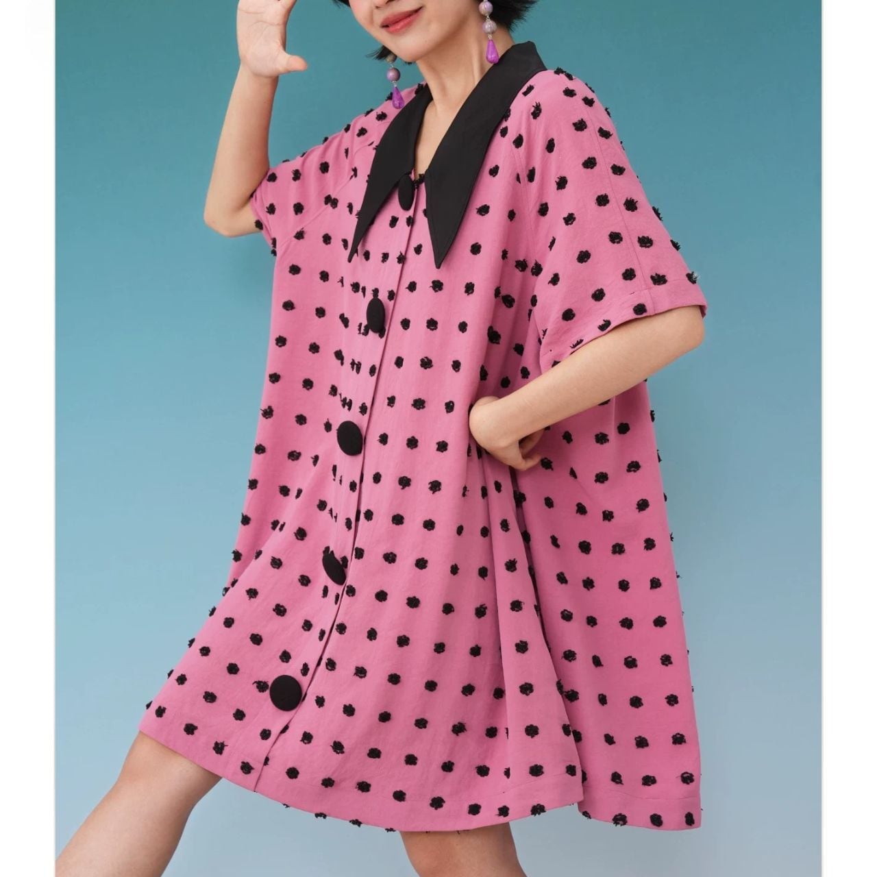 Pink Black Polka Dot Dress A1182