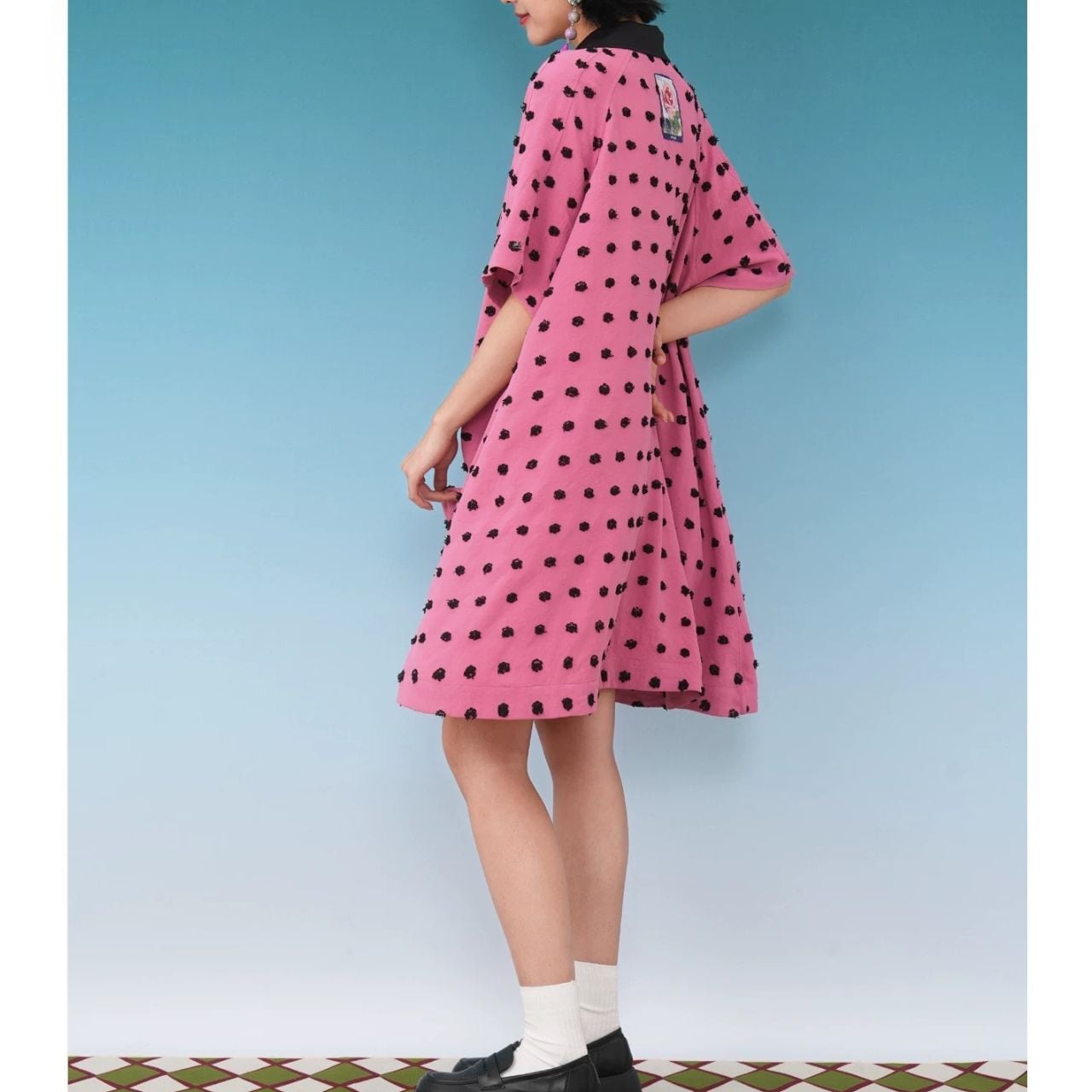 ピンク×ブラックのドット柄に、